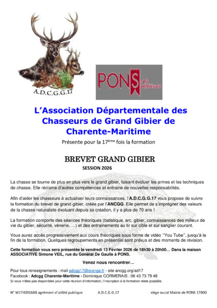 Publié le 01 février 2026 par Association des Chasseurs de Grand Gibier de Charente Maritime